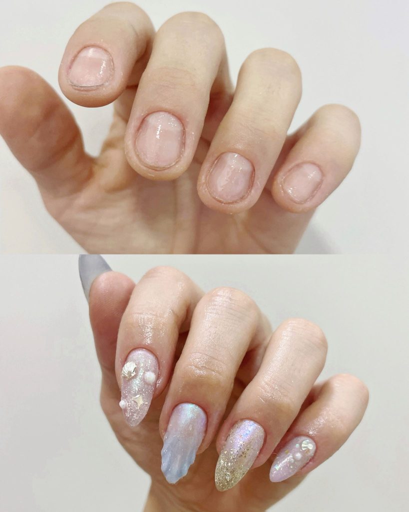 Técnica de alargamiento de uñas con acrylgel, un material de última generación, híbrido entre el gel y el acrílico, más duradero, resistente y ligero. Con esto podemos dar a la uña la forma que queramos, reforzarlas, reconstruir uñas dañadas o alargar uñas mordidas.